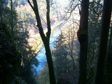 Super Blick von hier oben steil abwärts ins enge Tal ... |