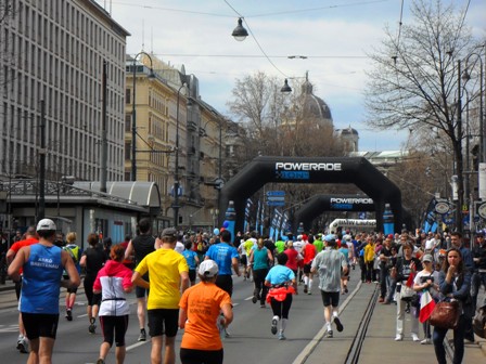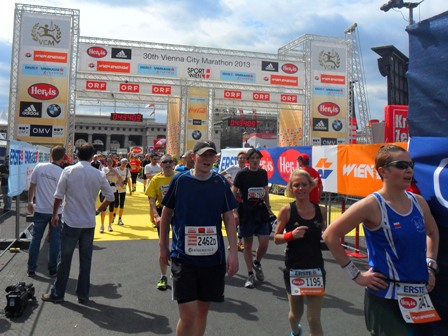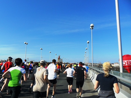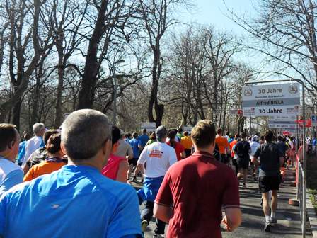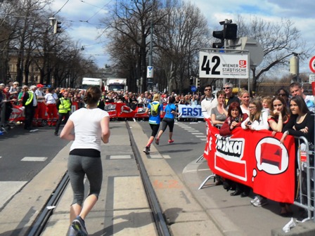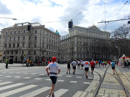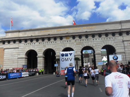 bei KM 21 die Halbmarathonis auf den Heldenplatz abbogen.