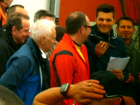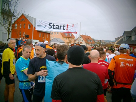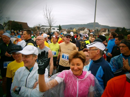 Die leicht fröstelnden Läufer stehen noch...