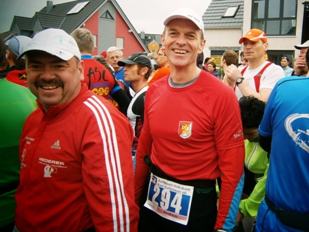 ...daneben sammeln sich die Marathonläufer