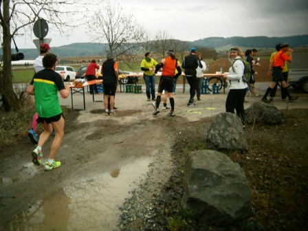 ...die offizielle km10-Getränkestelle (Achtung Pfütze!)