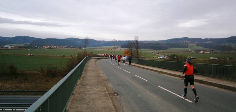 Fazit: Eine sehr anspruchsvolle Strecke (700 Höhenmeter) auf der ersten Hälfte, herrliche Blicke in die oberfränkische Landschaft, prima Organisation und das Après-Marathon in der Therme. Wow!