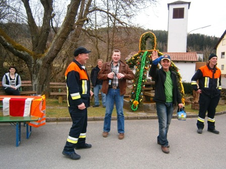 Km32: Die fröhlichen Loffelder Feuerwehrmänner am Brunnen