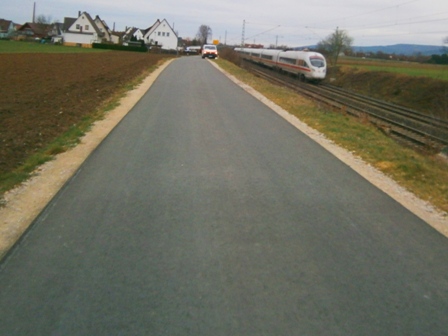 Die gefürchtete lange "Bahngerade" (immer kommt hier ein Zug)