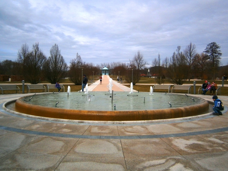Durch den schönen Kurpark: Vom Pavillion auf rotem "Teppich" zum Fontäne-Brunnen (da vergisst man die vergangenen 41km fast)