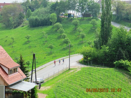 Mit dem Rad wäre es viel einfacher, seine Läufer zu treffen. Doch das ist ja verboten (dennoch sehe ich Radbegleitung).