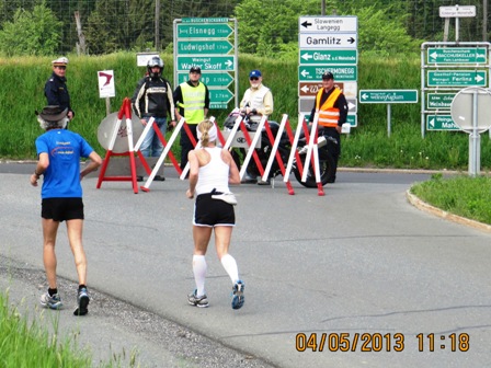 Während meine Frau und Ihr Spaßbegleiter Lionheart 42km laufen, fahre ich über 100km, um sie ab und zu an der Strecke zu treffen, wo es eben möglich ist. Es sind schon eine Portion Kartenstudium und Navi-Tricks nötig. Dazu muss ich kalkulieren, wann die beiden wo laufen. Nicht so leicht...
