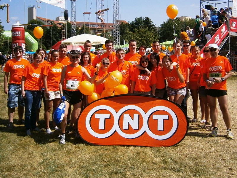 früh. Es warten 5 andere TNT-Läufer, leicht zu sehen in knallorange.