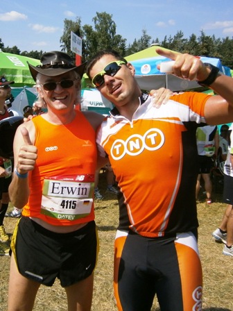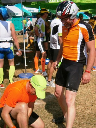 Wir (rechts) treffen auf die Finisher bei km 41 (links) |