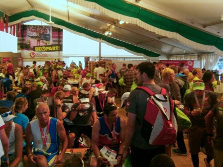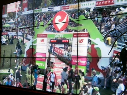 Im Finsher-Verpflegungs-Zelt gibts ne große live-Videowand