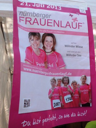 Wieder organisiert Anita einen Frauenlauf in der Frankenmetropole. 2013 geht die Strecke um den Wöhrder See und Start ist bei der Wöhrder Wiese. Heuer habe ich mich mit Kollegin Michi verabredet. Wir haben 2 (blinde) Schülerinnen "überzeugt", dass so ein Frauenlauf doch einfach genial ist. Und dann diese Temperaturen... Holla-die-Waldfee, wir haben fast 30°C.