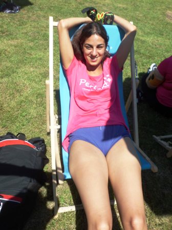 Langsam kommen wir zum Ende. Ab ins Ziel. - Eine Blütenkette um den Hals und ein Eis in der Hand hoppeln wir Richtung Massage und lassen uns verwöhnen. Bald kommen auch unsere Walkingmädels. Noch ein wenig die Stimmung genießen, ausruhen, gackern und dann Richtung Heimat, bzw. Schülerinnen ins Internat.