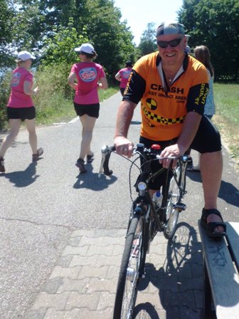 Noch ist es schattig. Aber spätestens am Wöhrder See trifft uns die Sonne wie ein Keulenschlag. Wir laufen schön gleichmäßig und sind sogar so dreist und motivieren die Zuschauer zum anfeuern. Also ehrlich alles muss frau selbst machen :-) Aber es hilft. Die Zuschauer am Wegrand klatschen und feuern uns an. Ein Adonis stellt sich in die bekannte Läufer-Pose in seiner Lederhose. Und der nette Radler wartet auf seine Frau und klatscht tüchtig.