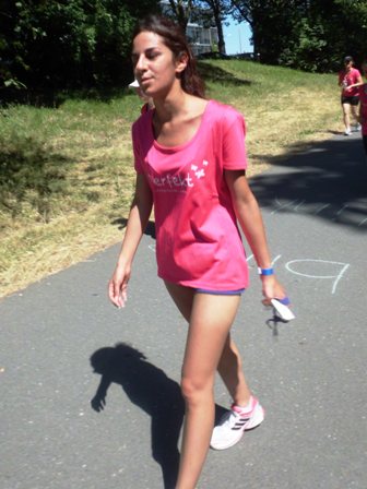 Super, die beiden Schülerinnen haben es geschafft. Jede Frau bekommt im Ziel eine Blütenkette + ein Eis (endlich!)