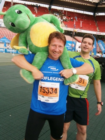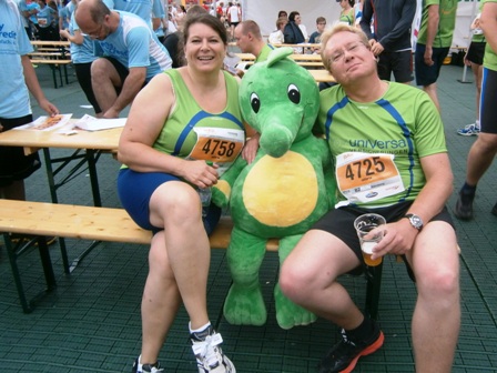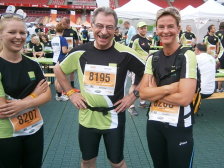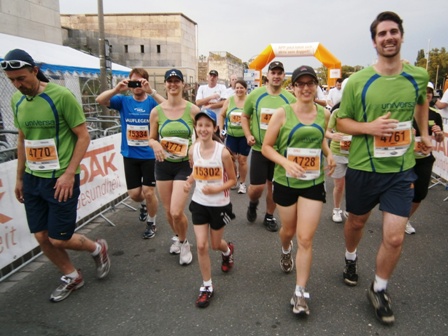 Über 40 Universa-Läufer (rechts in blau Klaus vom Partner HEK-Krankenkasse)