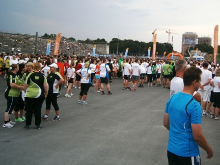 15.000 Firmen-Renner sammeln sich vor der Steinernen Tribüne (hier startet auch das Norisring-Autorennen)