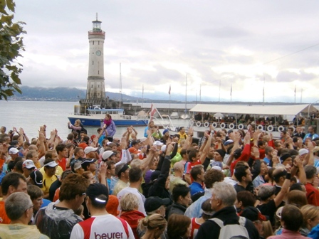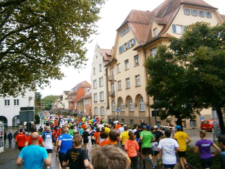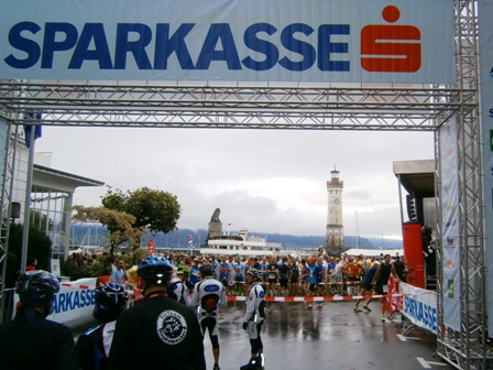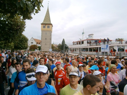 ...drängen durchs Starttor in die engen Strassen von Lindau... |