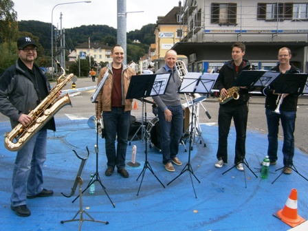 Die Brass-Band auf der Verkehrsinsel |