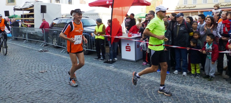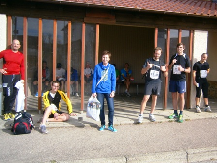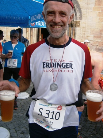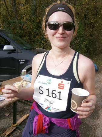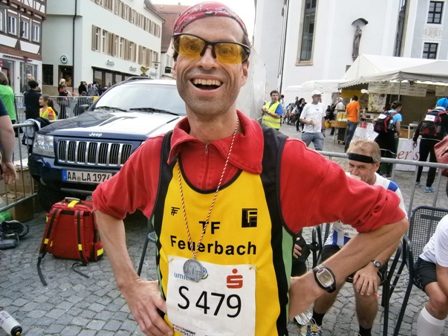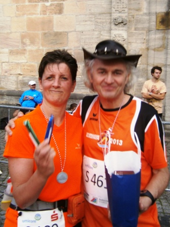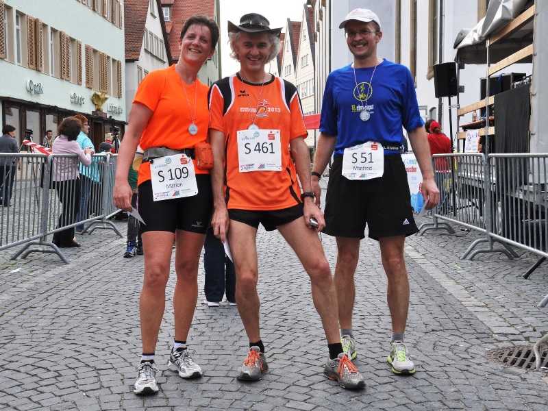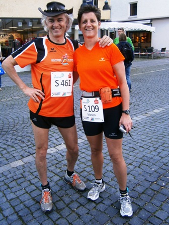 Eigentlich wollte ich mich mit Lea hier treffen (siehe mein Laufbericht St. Wendel 2013) aber sie ist leider krank. Glücklicherweise sind die Wetterprognosen gut. Also wird Lionheart starten, worüber ich mich riesig freue. Kurzerhand kommen auch noch Haxen-Harald (den Namen hat er von mir beim Augsburg Marathon 2012 bekommen) und Kuchen-Karlheinz. Der hat nun auch seinen offiziellen neuen Namen erhalten (seit seinen Kuchen-Stopps beim Nürnberger Stadtlauf). Ich kenne jetzt schon viele der großen "Familie Team Bittel".
