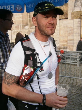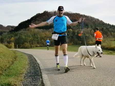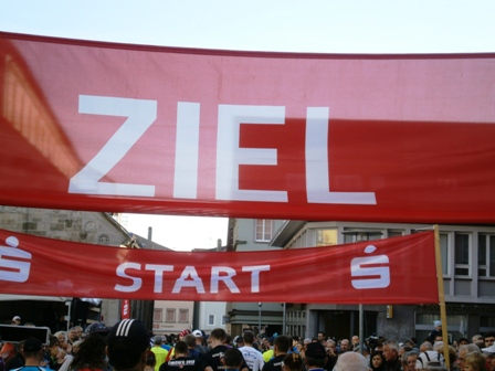 Endlich sind wir auf dem letzten Kilometer. Das Ziel ist in Sicht und jetzt weiß ich – ich habe es geschafft! Jetzt habe auch ich meinen ersten Ultra gefinisht und bin unsagbar glücklich. Lionheart hat mich erneut gut über die ganze Strecke begleitet (wie bei unserem ersten gemeinsamen Mal in Würzburg 2012). Und wir hatten sehr viel Spaß. Neben einer großen herzlichen Umarmung gebe ich ihm im Ziel auch noch 1 kg Schweizer Schokolade.
