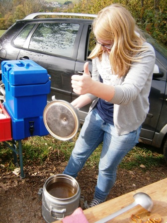 Birgit genießt die warme Bouillon, sehr lecker jetzt