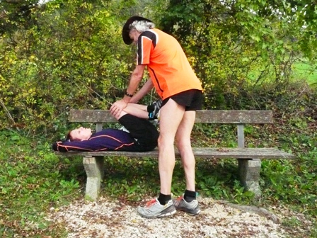 Gabriele und Jörg erhalten Lauf- und Fuß-Tipps (das gibt's von mir öfters unterwegs)