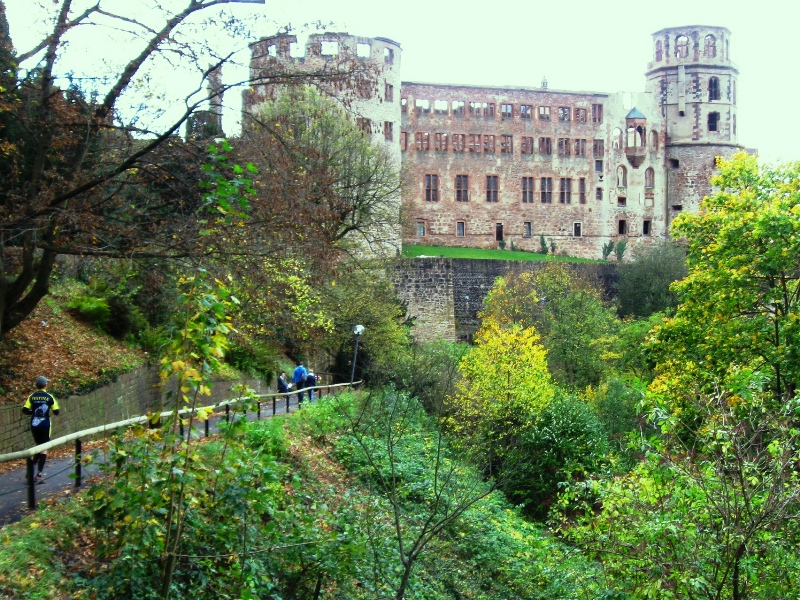 Als letztes Highlight des Tages wartet beim km40, von den schönsten Herbstfarben umrahmt, das Heidelberger Schloss samt Schlosspark, der zum ersten Mal für eine Sportveranstaltung freigegeben wurde