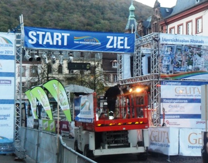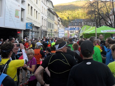 Früh erwache ich, um genau zu sein um 03.37 Uhr, als der Regen gegen mein Fenster trommelt. Zeit, um noch einmal die Decke über den Kopf zu ziehen, in der Hoffnung, dass der Wettergott bis zum Start des 1. Heidelberg-Trail-Marathon um 09.00 Uhr ein Einsehen hat und uns doch Premierenwetter schickt.