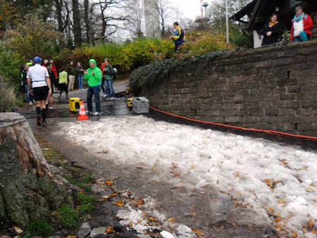 Jetzt sind wir auf dem höchsten Punkt der Strecke (Königsstuhl), wo als Überraschung extra Schnee hergeschafft wurde