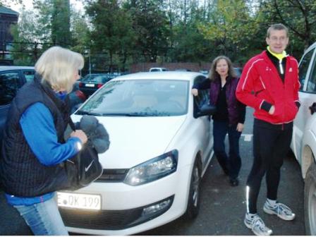 Ankunft am Parkplatz. Noch ist es hell. Wir 4 liefen 5 km und