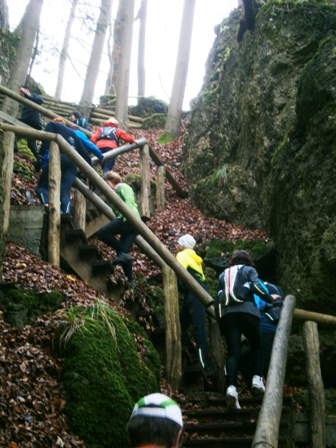 Alle klettern die letzten Stufen rauf... |