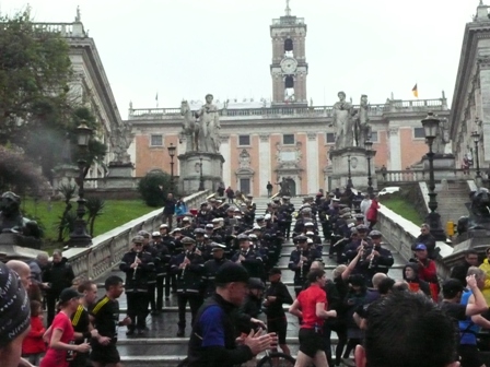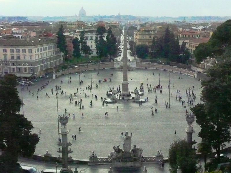 Bei km 40 wird der Obelisk auf der Piazza Popolo umrundet: Kopfsteinpflaster und strömender Regen (s. Video )