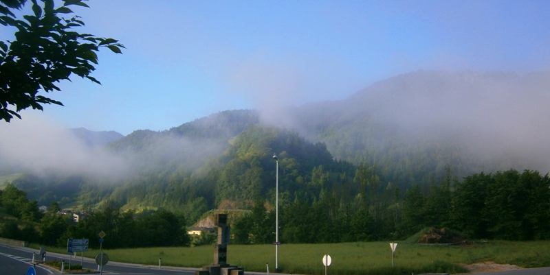 Während morgens um 7 die Wolken noch im Ennstal tief hängen... |