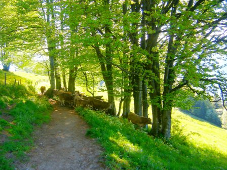 ...die Kühe stehen im Schatten, weil es schon warm wird |
