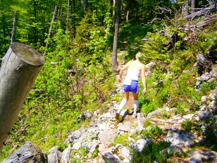 Der wirklich steile Streckenverlauf bietet 95% Wald, nur 3 Sonnenstücke