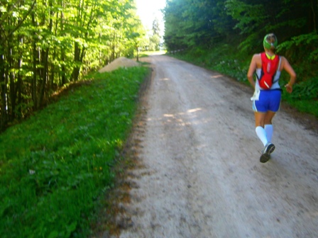 sehr schwer zu laufen (auf und ab): Nur 2,5km der 8,4km-Runde ist joggbar (Wald-Fahrweg), und davon muss man die Hälfte steil abwärts