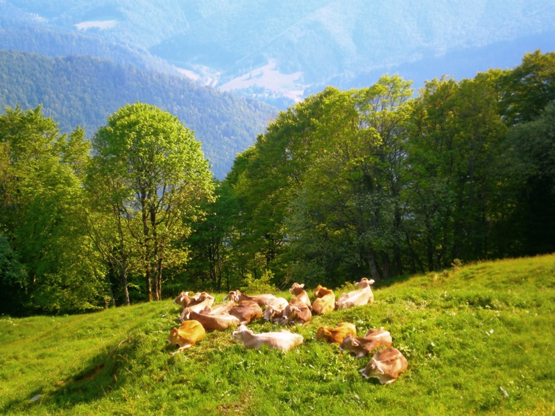 Auch die Kühe machen langsam Feierabend, ausreichend satt von