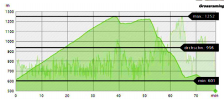 (Start, Halbzeit-Wiese, Gipfel). Die Höhenmeter sind nicht alpin, aber