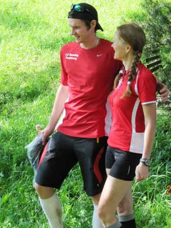 wo die Forststrasse beginnt: Wieder überholen uns Läufer