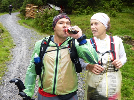 "Am VP Trenkwald treffen wir Erwin Bittel. Er hat die Marathondistanz wegen einer Verletzung abgebrochen und hilft jetzt hier am VP mit. Bei ihm laufen alle durch und er ist sichtlich erschüttert, wie viele Leute hier verletzt ankommen".