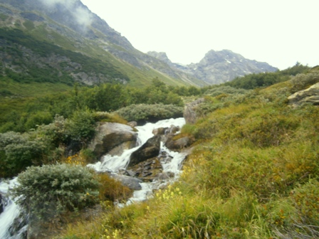 Hier sammelt sich das Wasser für den Gebirgsbach, steile Abgründe links von uns (s. Video)
