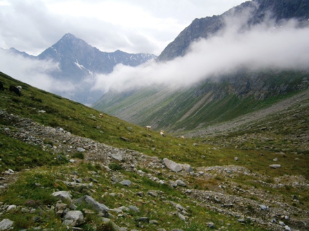 10min später beschließe ich ins Tal zurückzukehren, mich zwickt etwas im Bein. Susannerl + Bern ziehen weiter nach oben