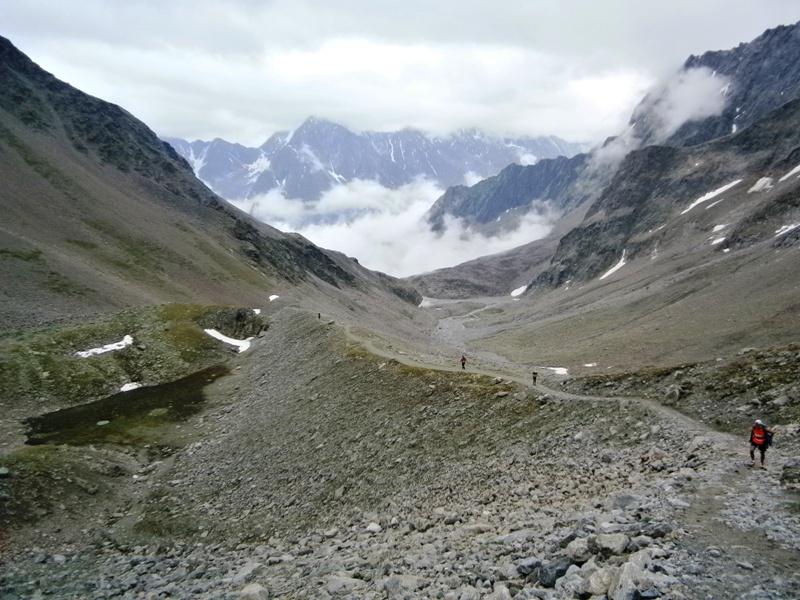 Wanderer im Abstieg von der Kaunergrat-Hütte