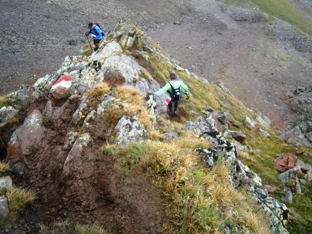 Über sehr rutschiges Geröll: Das letzte Stück hinauf, dann noch eine Seil-Passage (siehe Video)...