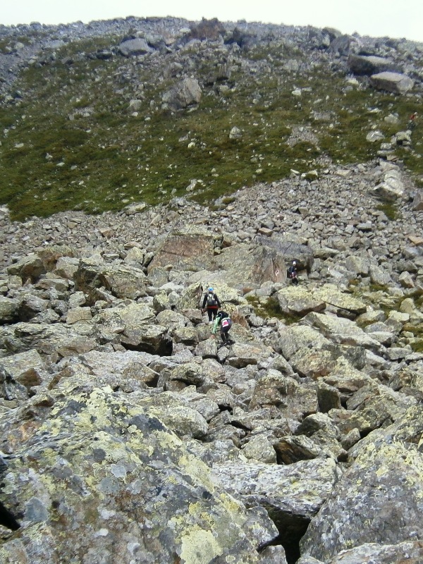 Kleine Ameisen klettern im Geröllfeld. Dazu kommt noch etwas Regen, vorsichtig!