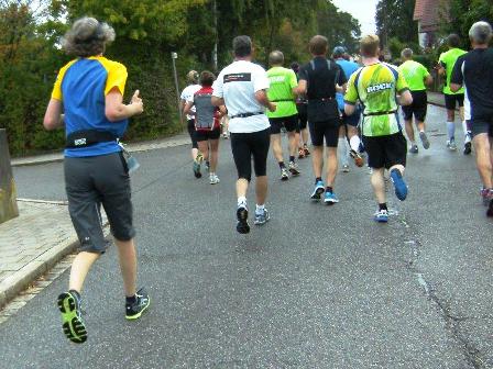 Start: Dicht gedrängt läuft der Läuferpulk durch das Tor am Rathaus, heraus aus der Stadt. Sehr viele, junge Läuferinnen und Läufer in recht beachtlichem Tempo. Ich versuche meinen Rhythmus zu finden und trotte so vor mich hin. Immer wieder stehen Leute an der Straße die mit Kuhglocken und Tröten. Das laute Klatschen und die anfeuernden Zurufe lassen eine tolle Stimmung aufkommen.