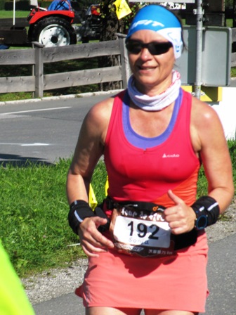 ...aus Sicht des Fahrrad-Begleiters: Ich kann wunderbar mit dem Rad die ersten 21km begleiten, es ist ziemlich flach. Erst ab der Hälfte wird es steil, da nehme ich die Seilbahn und treffe meine Frau und die Läufer weiter oben wieder. - Viele Läufer freuen sich und lächeln mir zu. Ich finde das immer seeehr interessant, die unterschiedlichen Gesichter zu sehen.