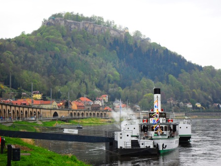 ...etwas untergeht bei der tollen Aussicht zur Rechten (Elbsandsteingebirge mit berühmter Festung Königstein + Bastei, Wahrzeichen der Sächsischen Schweiz)