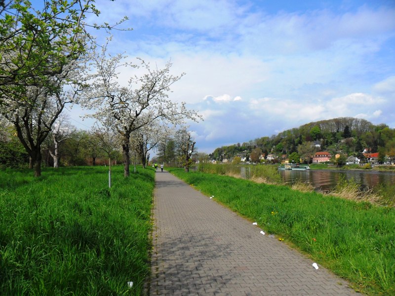...laufen wir auf dem Elb-Radweg flussabwärts in Richtung Dresden