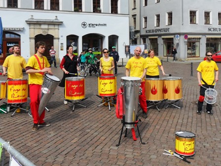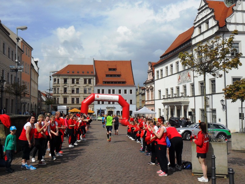 Nächstes Highlight – der Marktplatz der Stadt Pirna, wo wir durch Cheerleader und...